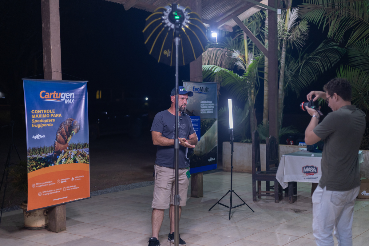 A produção envolveu entrevistas com produtores rurais, filmagens em fazendas da região, imagens aéreas com drone e fotografias profissionais. Cada etapa foi pensada para transmitir credibilidade, inovação e conexão com o público.
