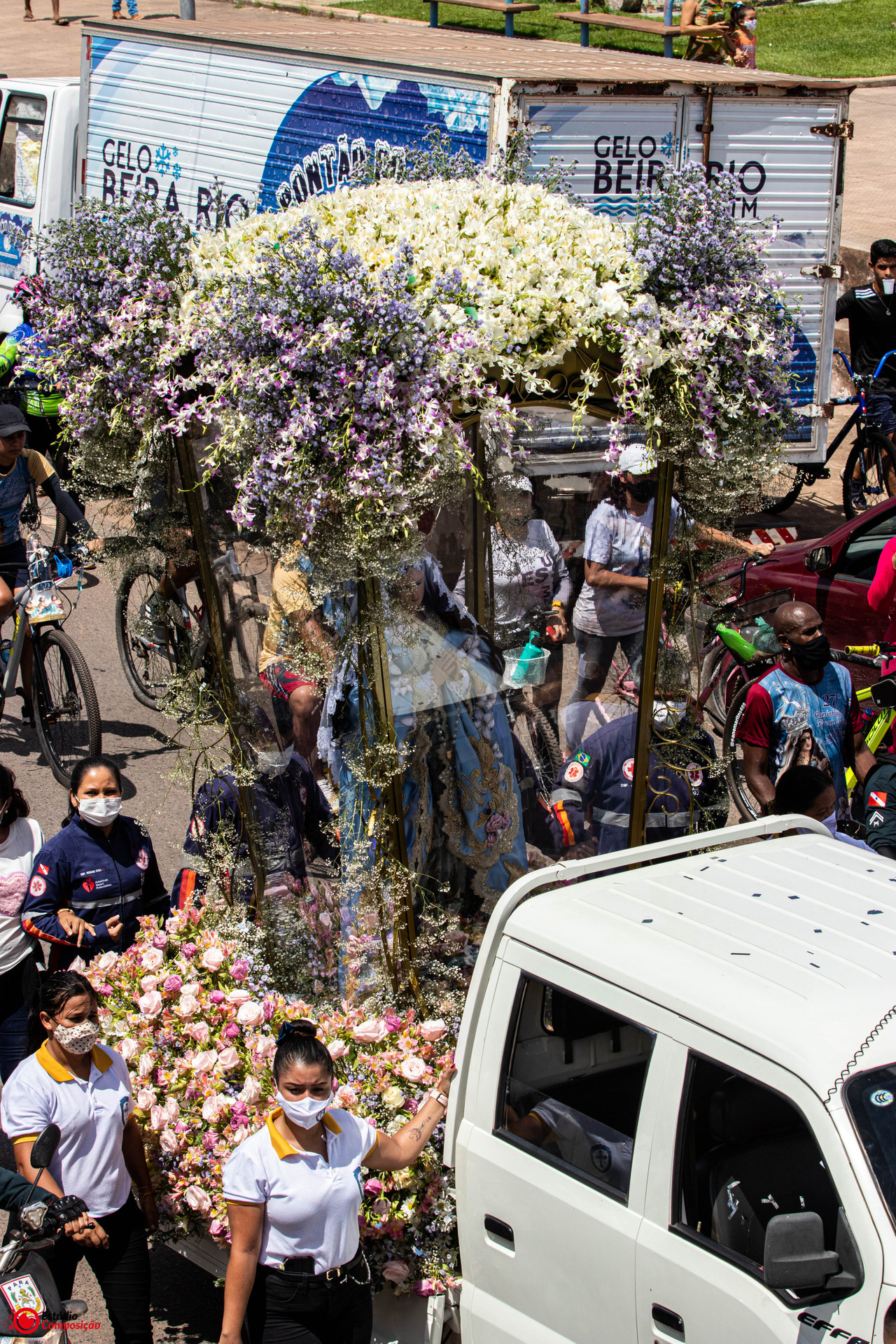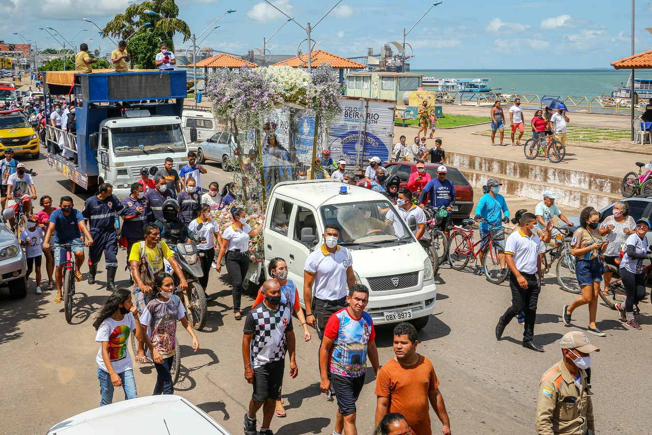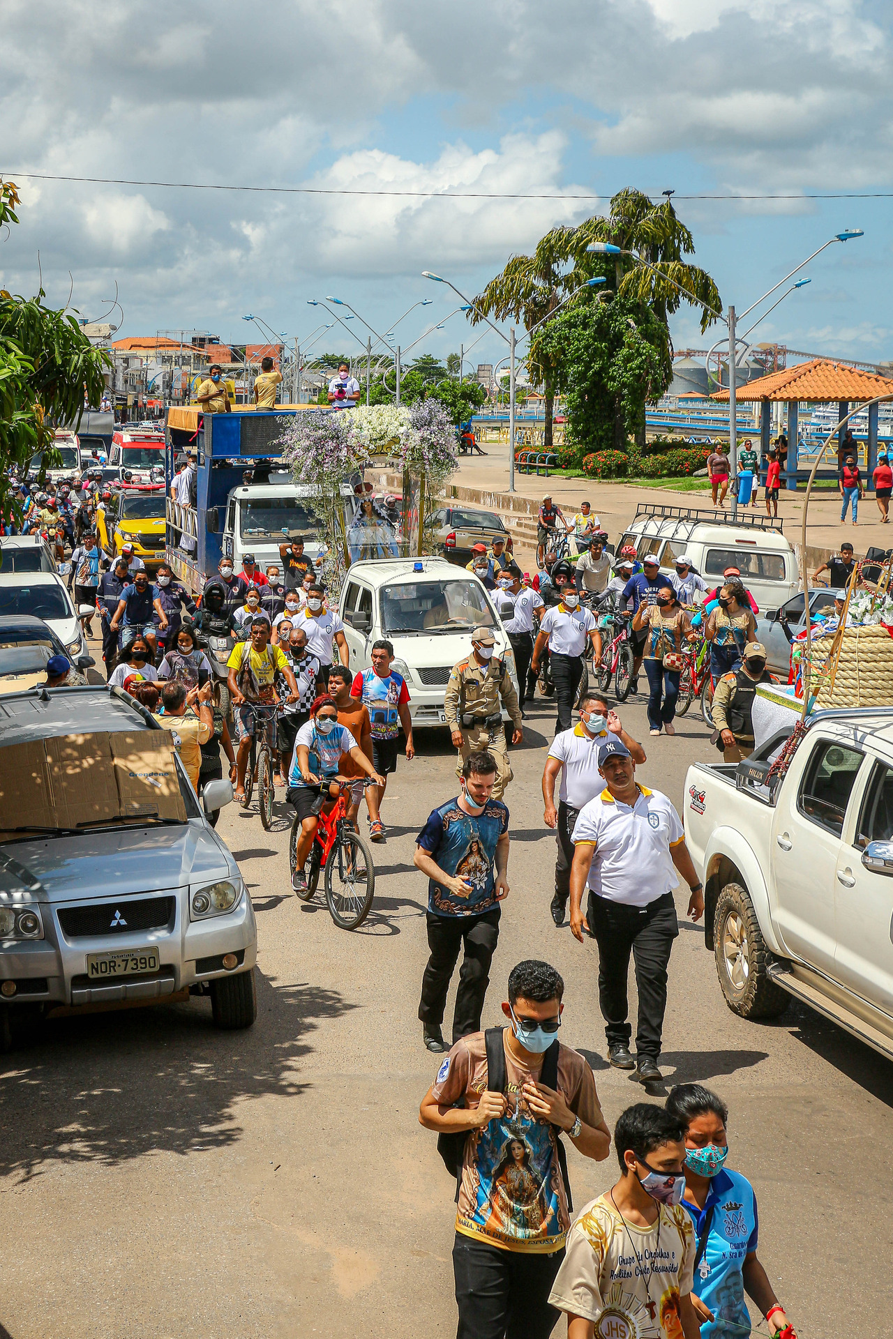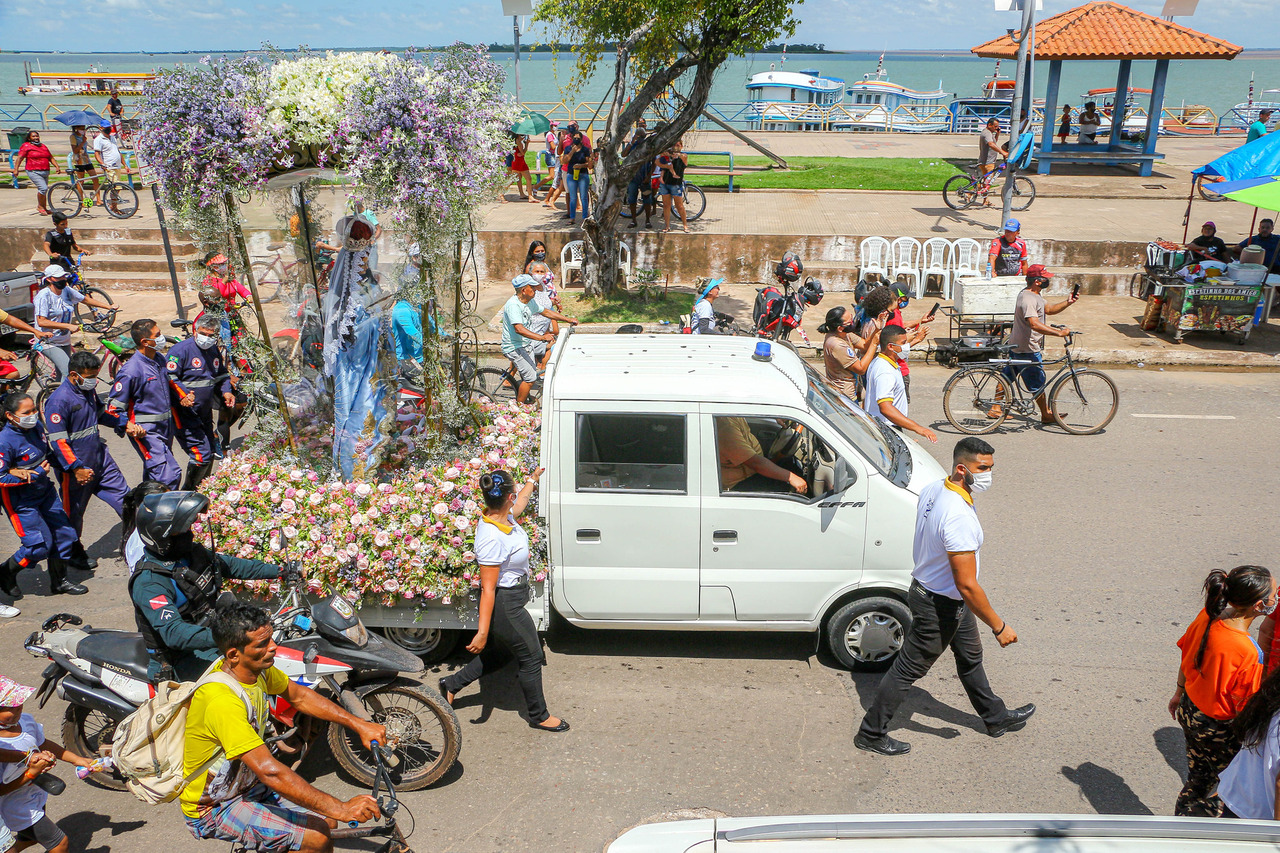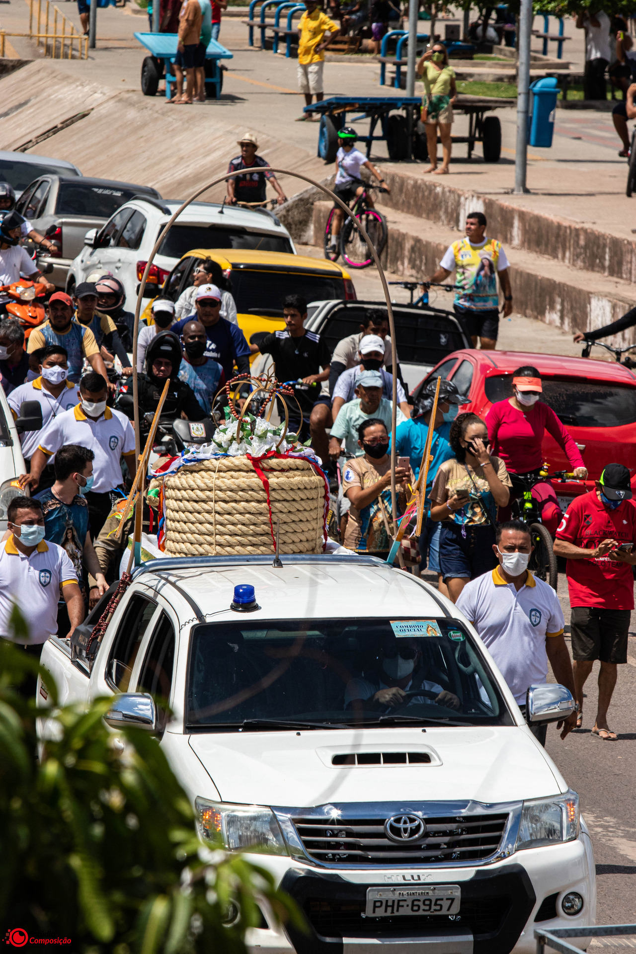 A imagem foi conduzida em um carro, seguida por grupos de bicicleta, moto, jet-skis e carros com os devotos, cada um buscando de alguma forma participar desse momento cultural histórico da cidade de Santarém.