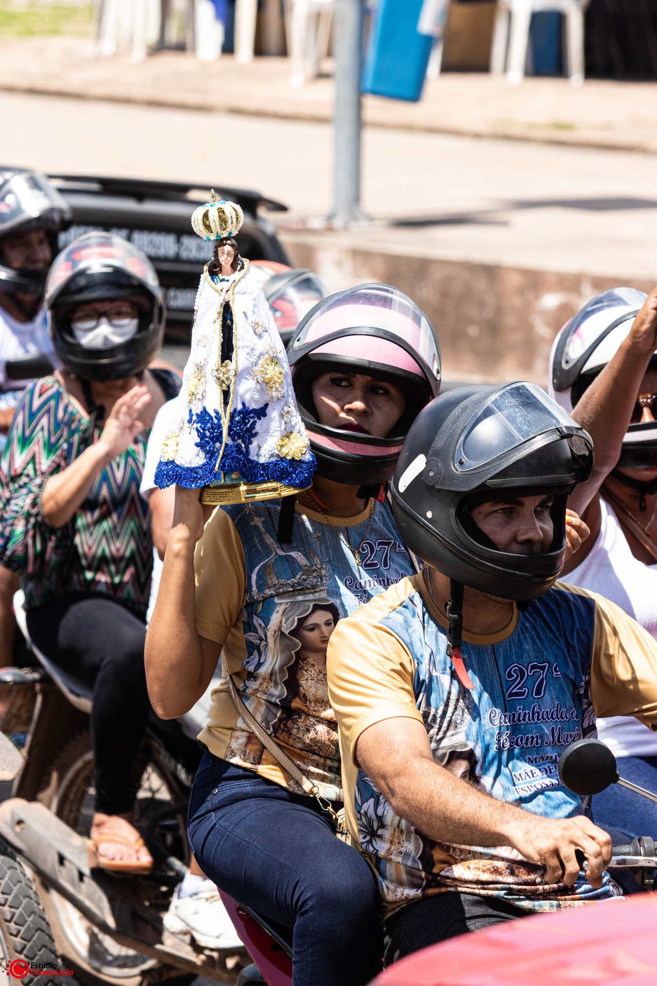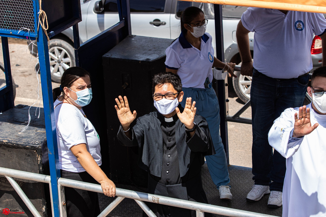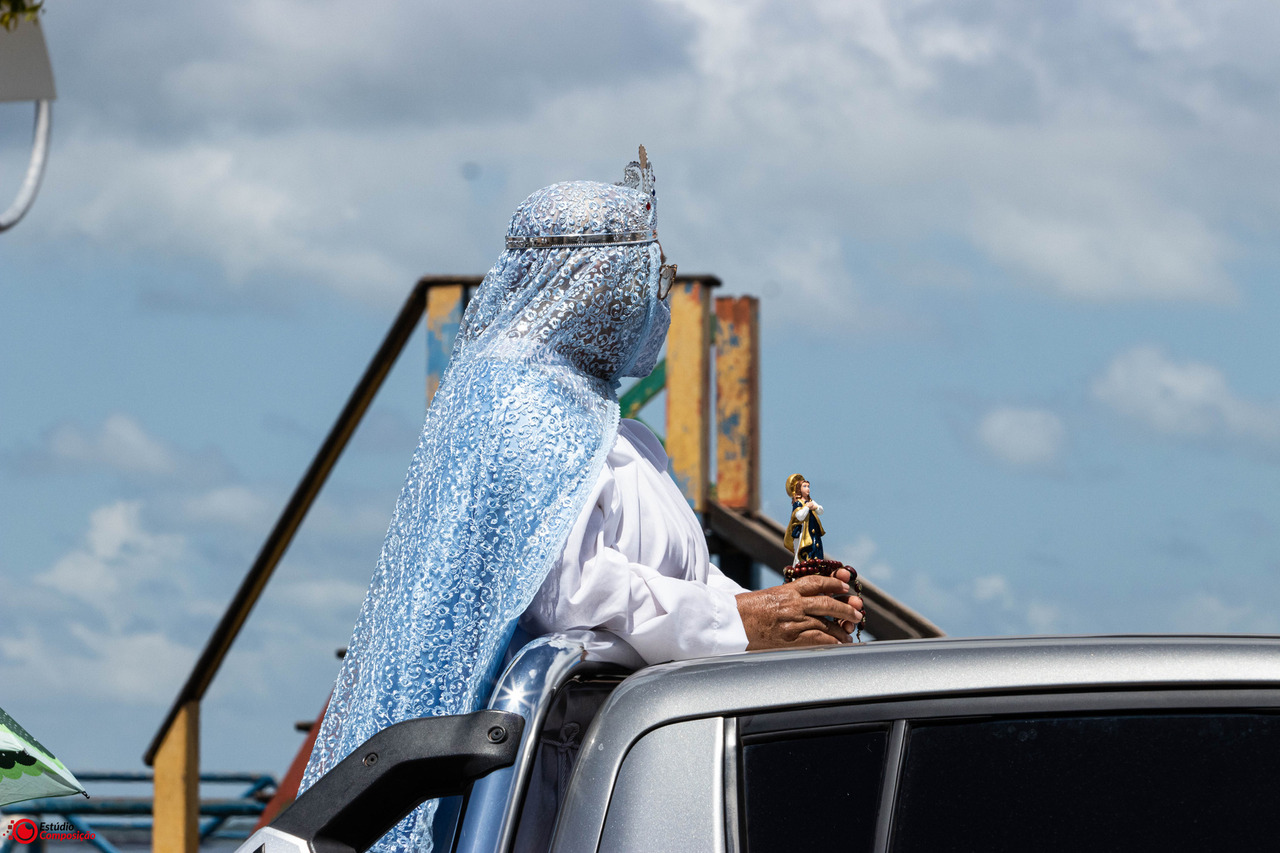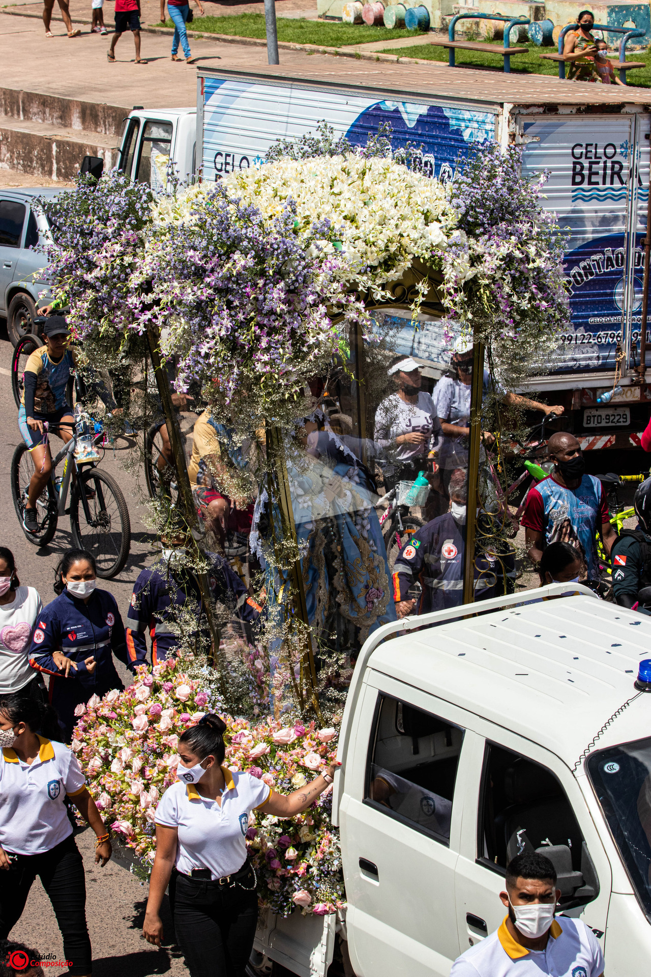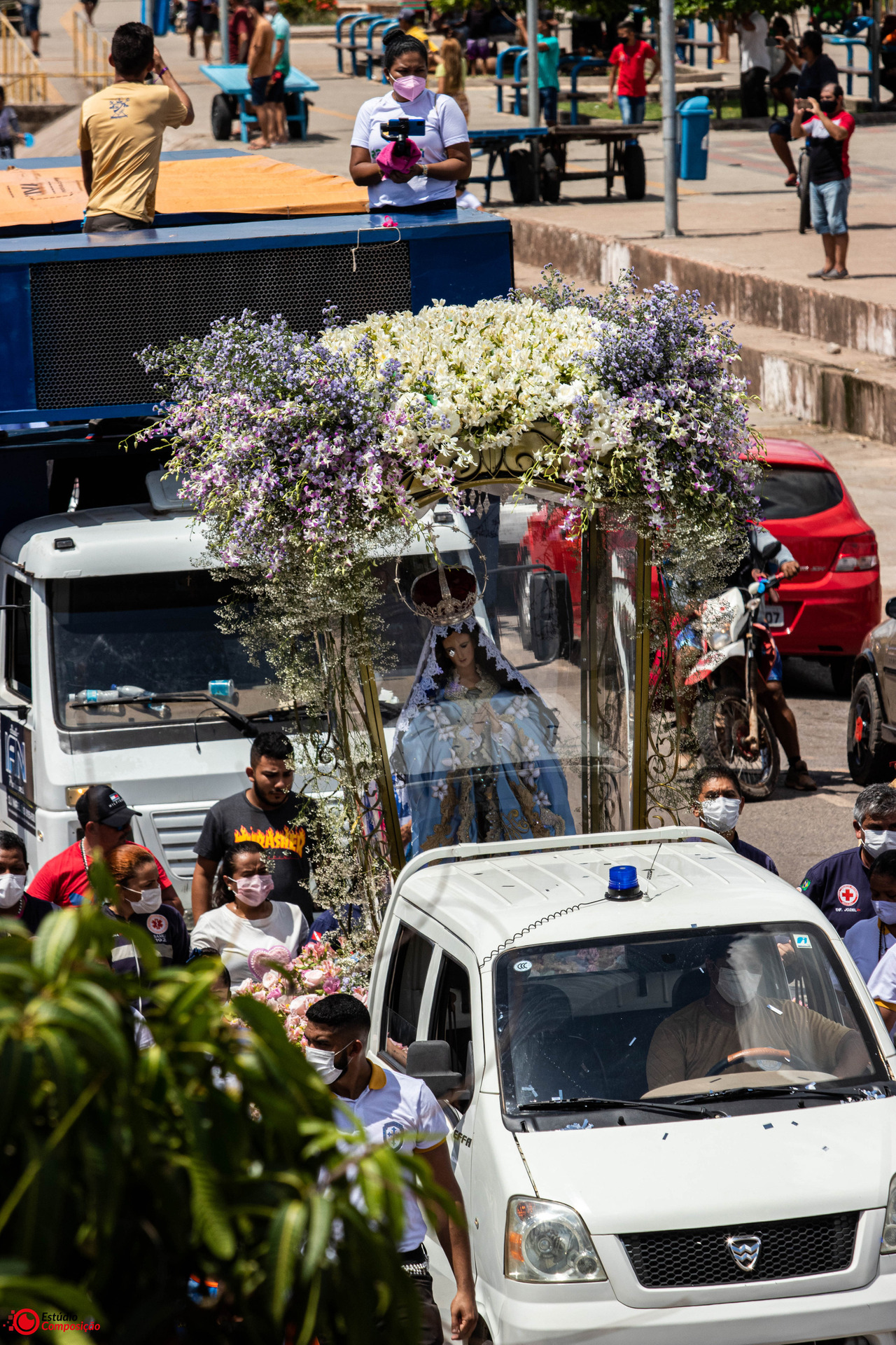 A imagem foi conduzida em um carro, seguida por grupos de bicicleta, moto, jet-skis e carros com os devotos, cada um buscando de alguma forma participar desse momento cultural histórico da cidade de Santarém.