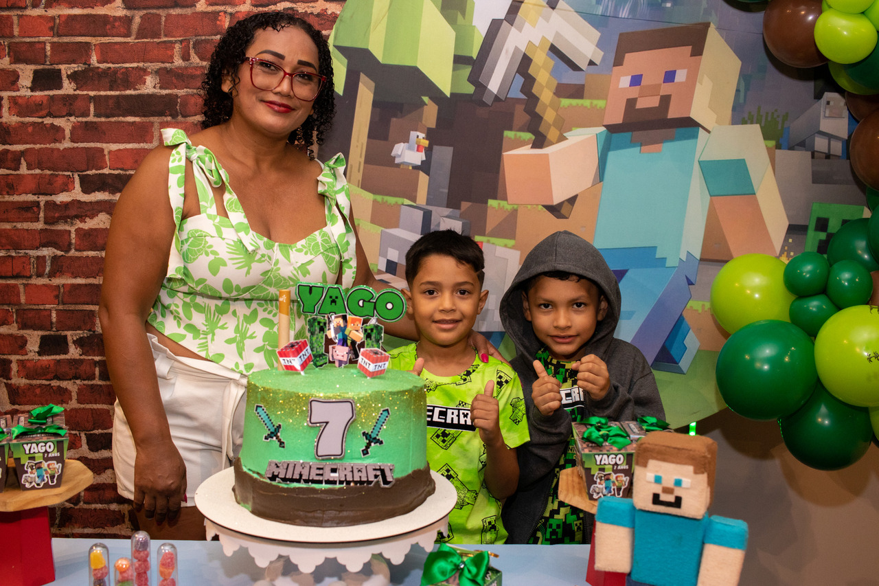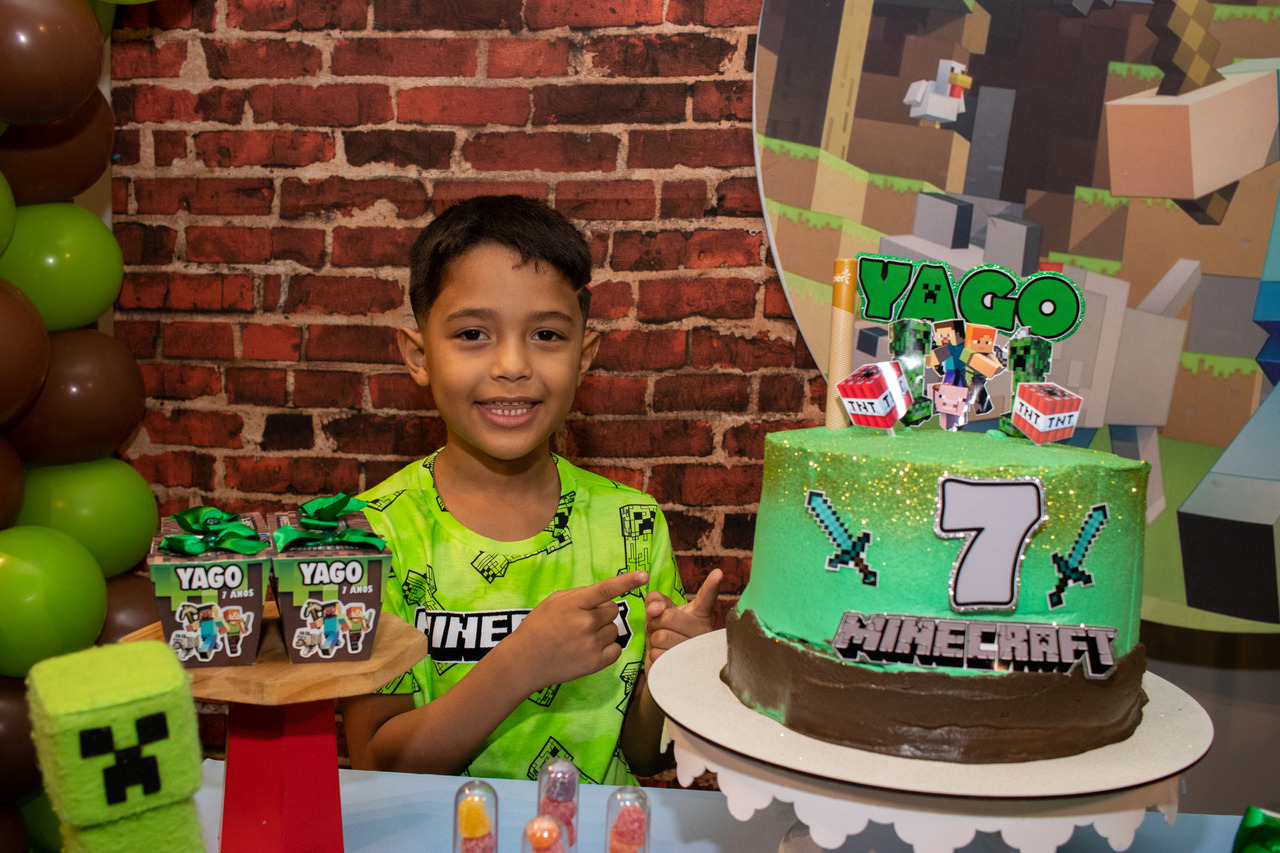 Quer ver mais fotos? Cliqui aqui Aniversário de 07 anos do Yago - Tema Minecraft